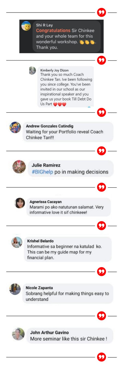 In this lesson, Coach Chinkee will teach you how to set income goals, strategize to achieve theman, and how to reinvent yourself.